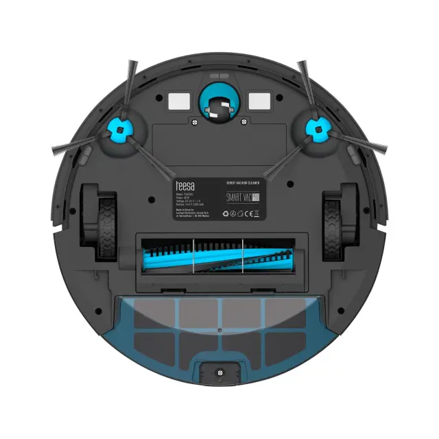 Napredni čistilni robot Teesa zahvaljujoč 4 stopnjam sesalne moči ter trdni vrtljivi glavni krtači in dvema stranskima krtačama odlično posesa umazanijo s katere koli površine, tudi tiste, ki se naberejo na robovih ali kotih.