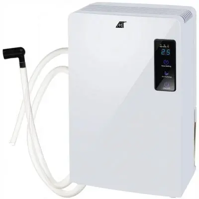 SPECIFIKACIJA – barva: bela; material: kovina / plastika; zaslon: LCD, prikazuje: temperaturo in vlažnost; časovnik: 24 – urni; 2v1 čiščenje in sušenje zraka; možnost dela pri temperaturah pod 0: da, do -5ºC; funkcija samodejnega odmrzovanja; velikost sobe: do 30 m²; čiščenje: za razgradnjo onesnaževal zraka uporablja tehnologijo UV svetlobe in titanovega dioksida ( TiO2); zmogljivost sušenja: do 700 ml na dan pri 25 °C in 85% vlažnosti; prostornina rezervoarja za vodo: 2200 ml; možnost odvajanja vode skozi cev: da; napetost: 220-240V; moč: 65W; samodejni izklop po polnjenju rezervoarja: da; način delovanja: po Peltierjevem sistemu; primerno za: dom, pisarno itd.; odstranljiv rezervoar za vodo; mere: 36,5 / 12 / 24cm; dolžina cevi: 100 cm; dolžina kabla: 1,30m; teža: 2,382 kg; teža v paketu: 2,781 kg.