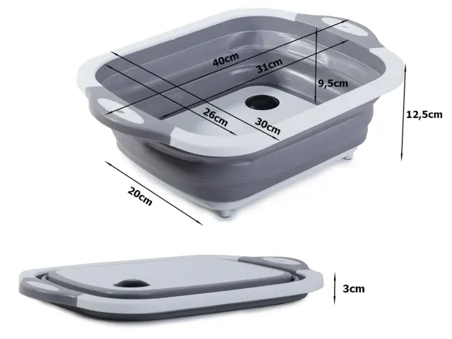 2v1 zložljiva nizka silikonska posoda z odtočno luknjo 5L in deska