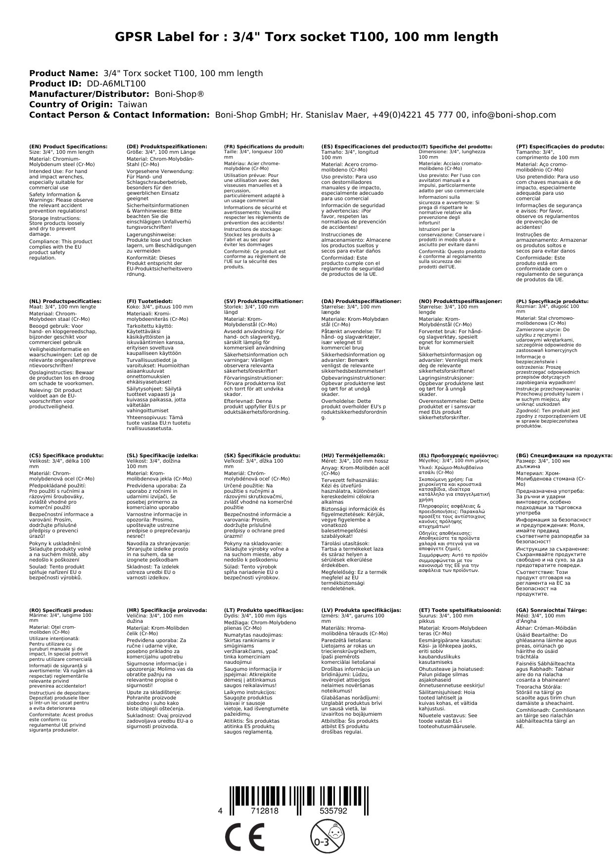 Naš 3/4" šestkotni nastavek T100 je zasnovan z mislijo na posledično delovanje tudi pri najzahtevnejših opravilih. Izdelan iz visokokakovostnega krom-molibden jekla (Cr-Mo), ta nastavek je robusten in vzdržljiv, kar zagotavlja dolgo življenjsko dobo in odpornost na ekstremne pogoje. Ključne specifikacije vključujejo 3/4" priklop, natančen šestkotni T100 priklop, 100 mm dolžine ter varno zasnovo s utorom in luknjo za kroglico, ki zagotavljata optimalen oprijem in preprečujeta zdrs med uporabo. Primeren je za delovanje z udarnimi vijačniki, kar omogoča hitro in brezhibno privijanje ter odvijanje vijakov, lahko pa se uporablja tudi ročno. Navodila za uporabo so enostavna: namestite nastavek na ustrezen vijačnik, zagotovite varno prileganje in izvedite delo z zaupanjem. Ta nastavek združuje industrijsko kakovost in inovativno zasnovo, kar ga naredi idealnega tako za profesionalne mehanike kot tudi za domače mojstre. Naročite 3/4" šestkotni nastavek T100 in izkusite izjemno učinkovitost, vzdržljivost ter varnost pri vsakem delu!
