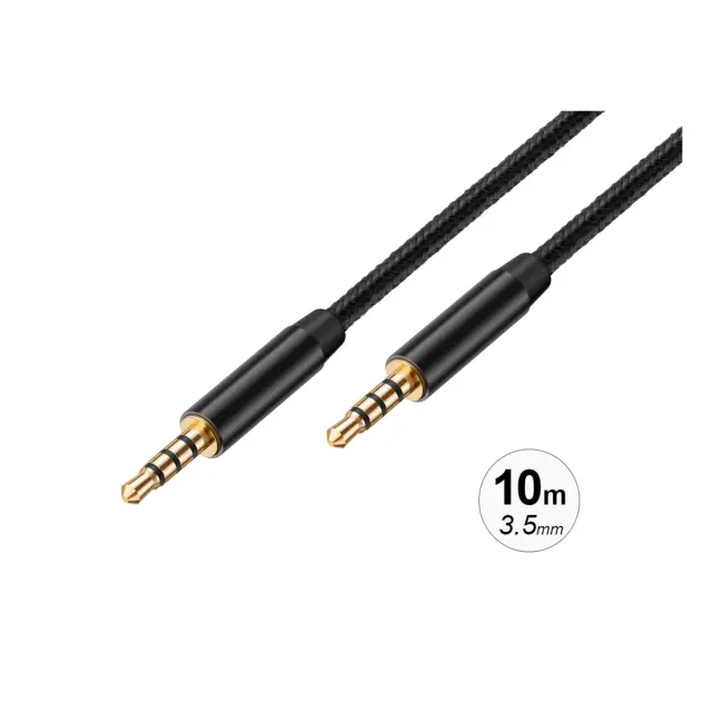 3,5-milimetrski zvočni kabel s pozlačenimi pletenimi najlonskimi konektorji 10 m, Črna