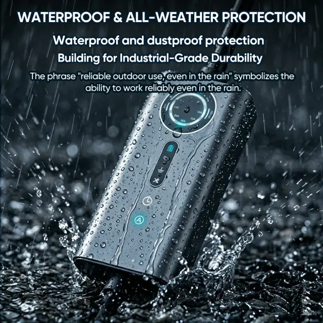 Celotna enota je zaščitena po standardu IP67 – popolnoma odporna proti prahu in vodi. Zanesljivo deluje tudi na prostem v dežju in zahtevnih vremenskih razmerah.