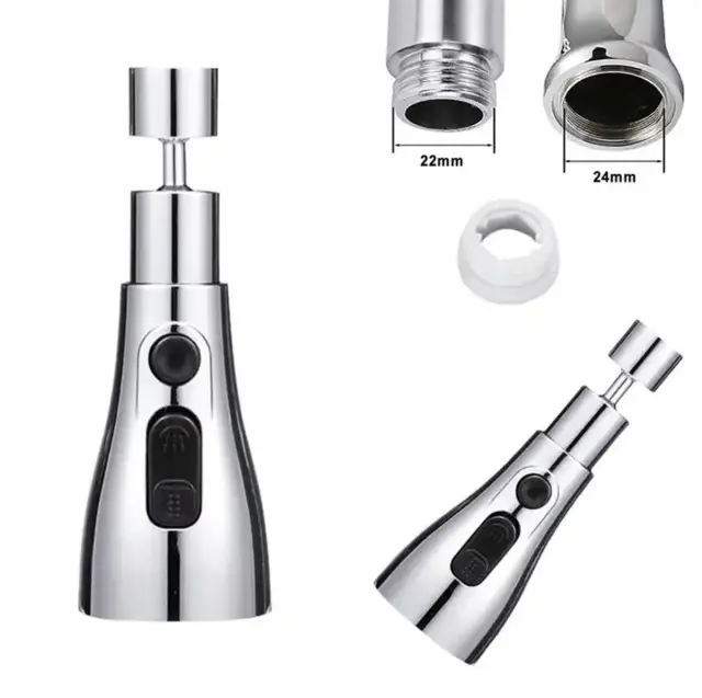 Univerzalni prezračevalni podaljšek z vrtljivo pipo – aerator. Varčuje z vodo, hkrati pa ohranja popolno udobje uporabe. Aerator je popolnoma vrtljiv (opremljen s krogličnim ležajem). Ima 3 načine delovanja – dve vrsti vodnega toka in pavza (okrogel gumb). Ustreza veliki večini pip, ki so na voljo na trgu. Odlikuje ga visoka odpornost na nastajanje vodnega kamna. Namestitev prezračevalnika je zelo enostavna – le privijte ga na izliv pipe z zunanjim navojem M22.