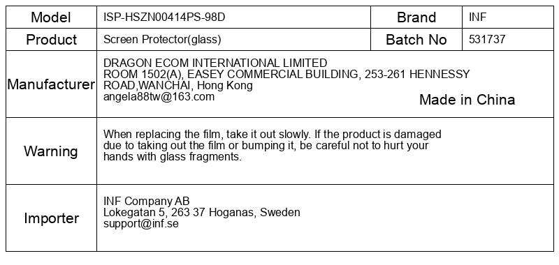 Ko zamenjate folijo, jo počasi odstranite. Če se izdelek poškoduje zaradi odstranitve folije ali udarca po njej, bodite previdni, da si ne poškodujete rok z delci stekla.