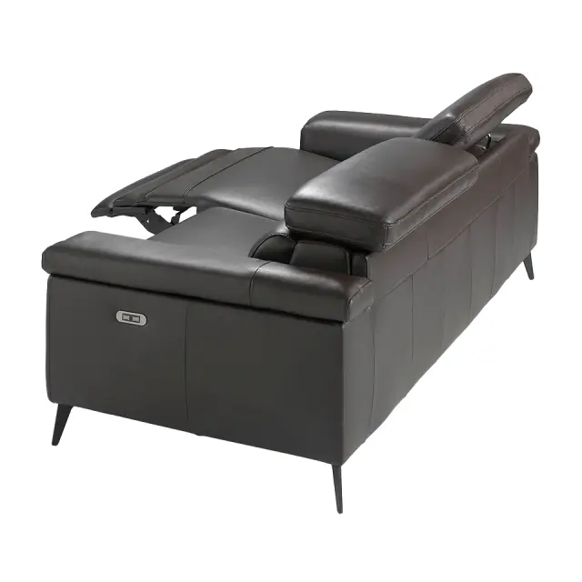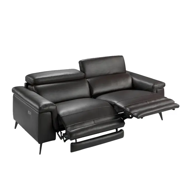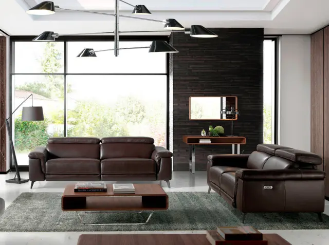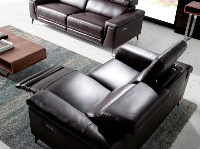 3-sedežni kavč rjavo usnje sproščajoči mehanizmi model 6051 Angel Cerdá S.L. Sodobno oblikovan 3-sedežni kavč, oblazinjen v 1 mm debelo goveje usnje čokoladno rjave barve, z neodvisnimi členastimi nasloni za roke in glavo. Kavč v avantgardnem in sodobnem slogu z robustno notranjo strukturo iz naravnega borovega lesa in trdnimi jeklenimi nogami, pobarvanimi s črnim epoksidnim premazom, ki mu daje pridih trendovskosti in elegance, ki ju iščete za svojo dnevno sobo. Naslonjalo in sedež iz poliuretanske pene s prostornino 20 kg/m3 ter dva električna sprostitvena mehanizma mu zagotavljajo dodatno udobje, ki ga potrebujete za sprostitev. - STIL: Ta izvirni 3-sedežni kavč, oblazinjen v najkvalitetnejše goveje usnje čokoladne barve, bo poskrbel za izviren in oseben dotik, ki ga iščete v svojem domu. - Vsestranski in funkcionalni dizajn z nasloni za roke omogoča, da se prilega vsaki vrsti dnevne sobe in postane glavni protagonist prostora. - KAKOVOST: Vse naše zofe so izdelane iz najkakovostnejših materialov, kar zagotavlja dolgotrajno in funkcionalno pohištvo. - DEKORACIJA: Zaradi svoje izvirne zasnove, ki združuje tople tone, kot sta čokoladno rjavo goveje usnje in črne jeklene noge, je to popoln kavč, ki zagotavlja popolno ravnovesje med slogom in udobjem. - UDOBJE: Velikost njegovih sedežev in oblazinjenje iz poliuretanske pene s prostornino 20 kg/m3 ter dva sprostitvena mehanizma in neodvisni členkasti nasloni za glavo vam bodo omogočili največje udobje, ne da bi pri tem zapustili najvišje trende.