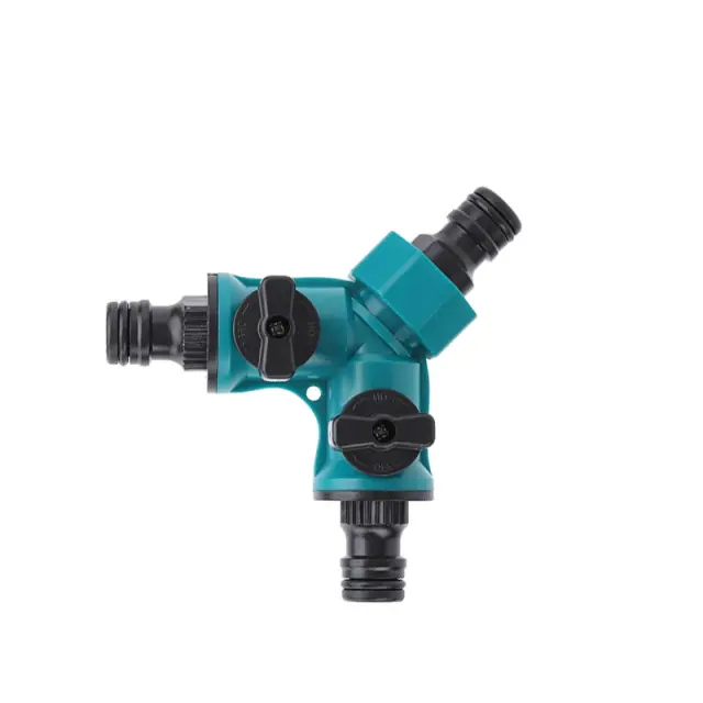 Učinkovita porazdelitev vode: Ta razdelilnik ventilov v obliki črke Y učinkovito porazdeli vodo za vrtnarjenje in namakanje, kar omogoča hkratno priključitev več različnih cevi ali namakalnih naprav.
