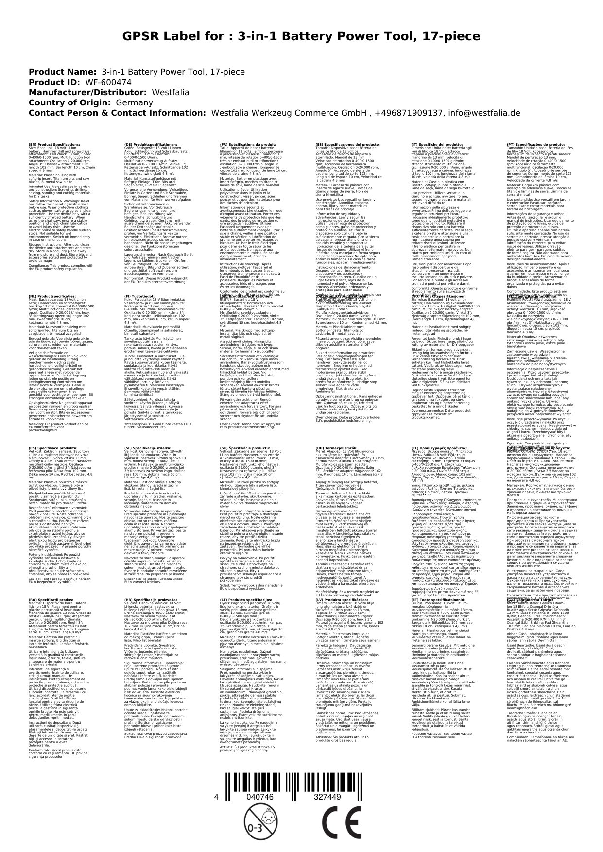 3-v-1 Akumulatorsko orodje 18V vrtalnik, multifunkcijsko, žaga s 17 dodatki