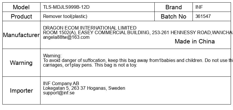 Opozorilo: Da bi se izognili nevarnosti zadušitve, vrečko hranite izven dosega dojenčkov in otrok. Vrečke ne uporabljajte v otroških posteljicah, vozičkih ali igralih. Ta vreča ni igrača.