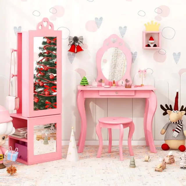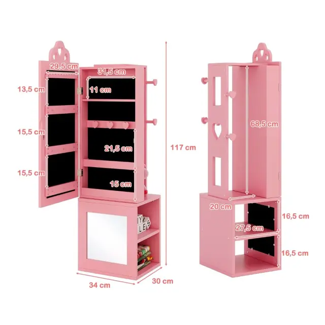 3 v 1 ogledalo z ogledalom polne dolžine in stojalom za oblačila Otroška omarica za nakit Roza