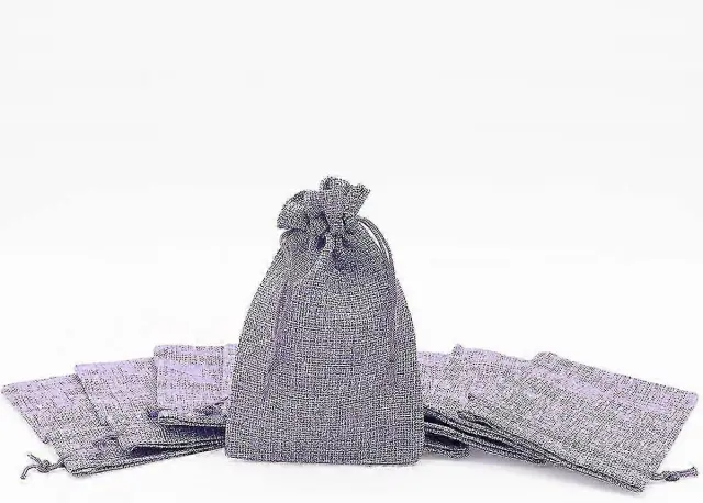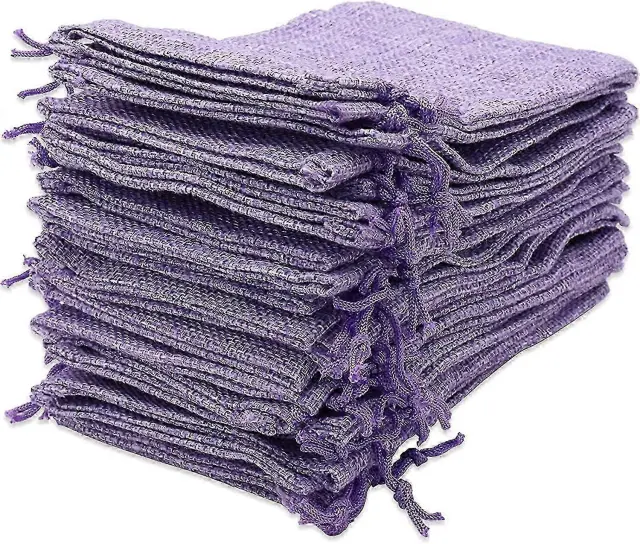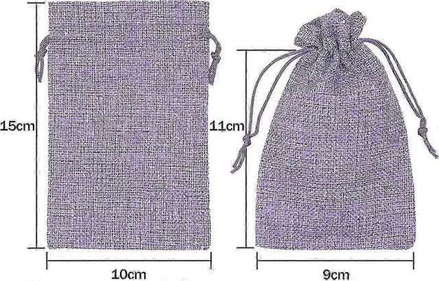 30 kosov vrečk iz jute za večkratno uporabo - 10x15 cm z vrvico za darila (svetlo vijolične)
