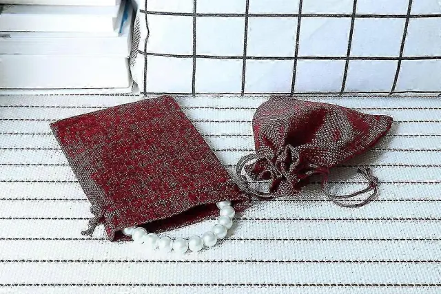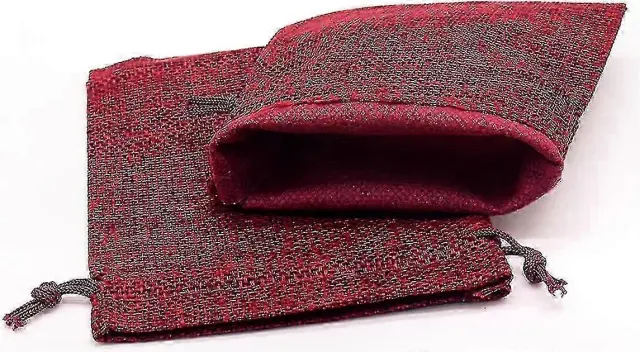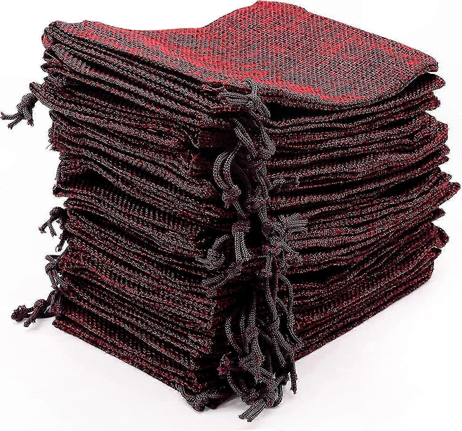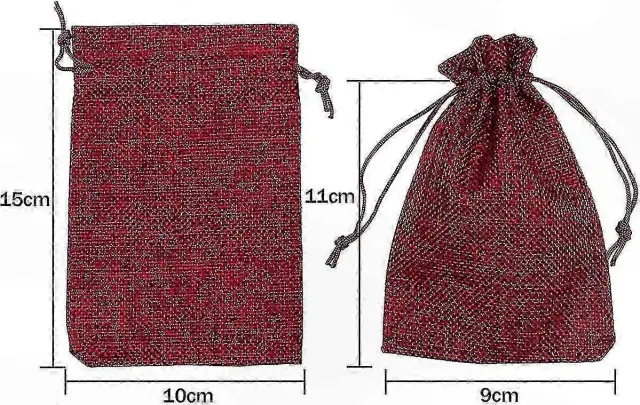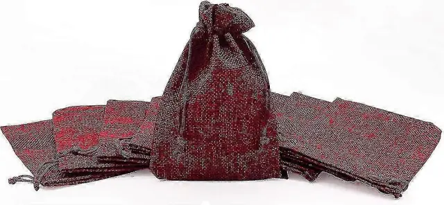 30 paketov darilnih vrečk iz jute, 10 x 15 cm vrečke za večkratno uporabo z vrvico, vrečke za shranjevanje iz naravnega lanu, vinsko rdeče barve