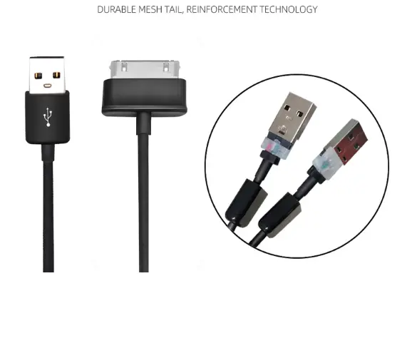 Polnilnik in podatkovni kabel za tablice, kot so Samsung P1000 / N8000 / P3100 / N8010 / P5110 / P739/2A in več. Polnilni kabel ponuja visoko hitrost polnjenja (2A) in hitro sinhronizacijo podatkov.