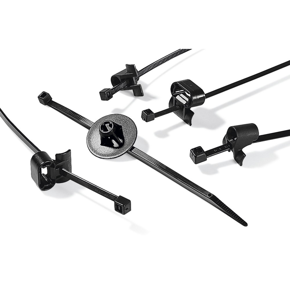 Na voljo z: - zvijačami za pritrditev: HellermannTyton kabelske vezalke 150x4,6 BK T50SSBS5-PA66HS-BK, enota pakiranja: 300 kosov, EAN: 4031026119762