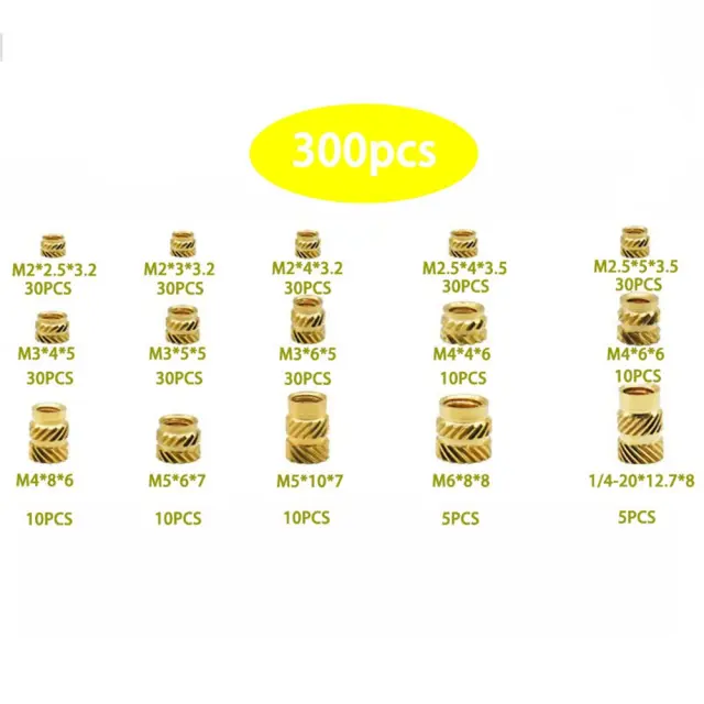 300 kosov Nastavljen komplet navojnih vložkov - Medeninasti toplotni vložki