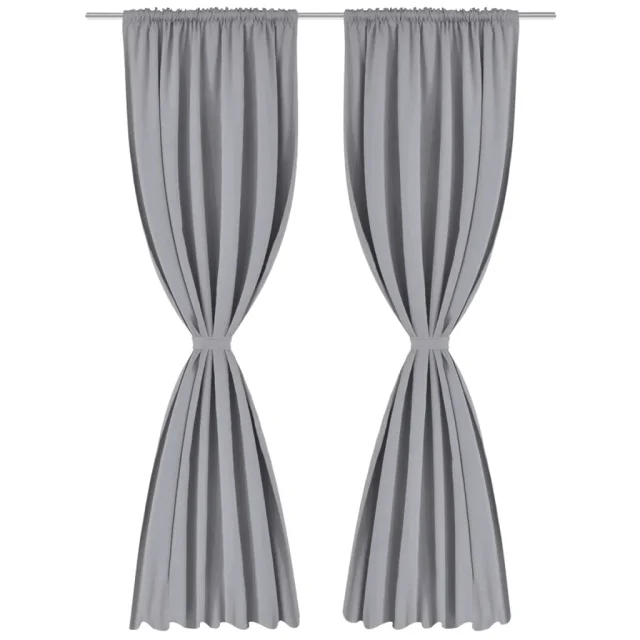 130376 2 pcs Grey Slot-Headed Blackout Curtains 135 x 245 cm