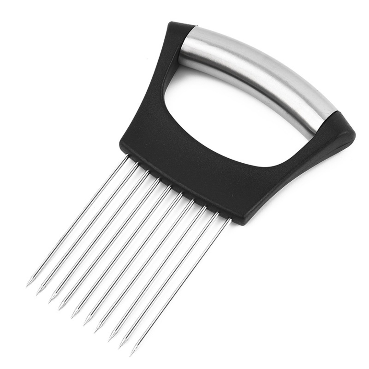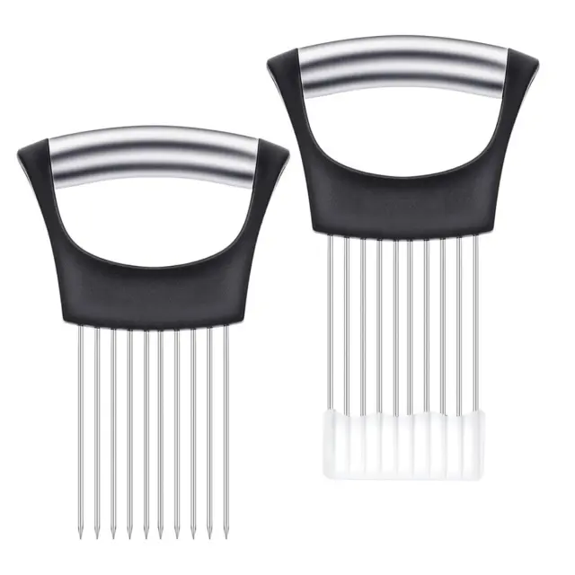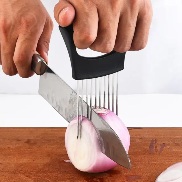 Stabilna rezila: Prosimo, upoštevajte: to niso originalni deli. Ta držalo zagotavlja izjemno stabilnost med rezanjem čebule, limone ali paradižnika. Ostrih igel iz 304 nerjavečega jekla varno prime kos hrane, kar omogoča popolnoma enakomerne rezine brez drsenja ali poškodb. Ergonomska oblika zmanjšuje utrujenost rok in povečuje natančnost pri pripravi sestavin v profesionalni ali domači kuhinji.