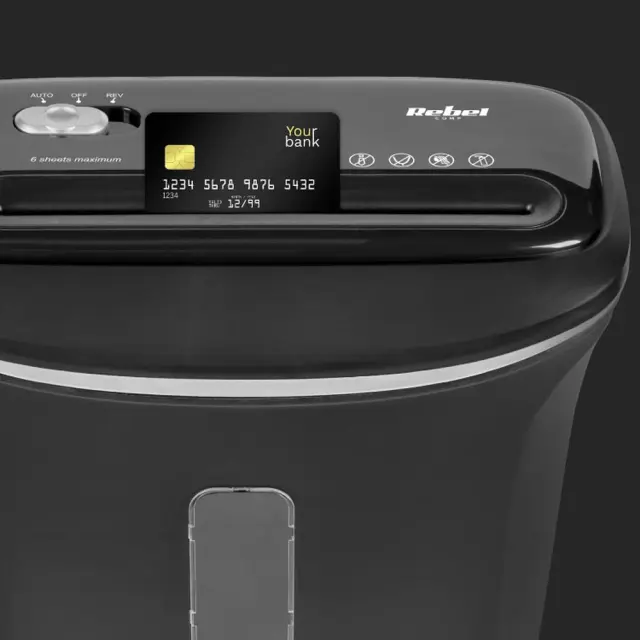 Uničevalnik Rebel vam omogoča uničenje 6 listov papirja naenkrat, s čimer se boste lahko hitro znebili velike količine nepotrebnih dokumentov. Poleg tega posebej zasnovan mehanizem razreže dokumente na kose velikosti 4×30 mm, tako da ste lahko prepričani, da uničeni podatki ne bodo ponovno ustvarjeni.