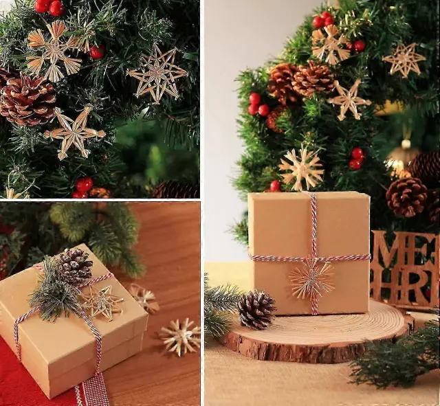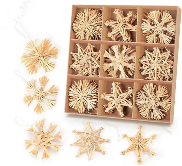 36-delni komplet slamnatih zvezd, 6 cm, slamnate zvezde, okrasek za drevesce, božični okrasek