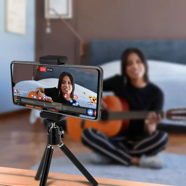 To mini stojalo LinQ stabilizira vaš pametni telefon in vam omogoca fotografiranje ostrih fotografij brez zamegljenosti. Zasukljiv za 360°, postavite svoj mobilni telefon navpicno ali vodoravno za snemanje ali fotografiranje iz katerega koli kota.