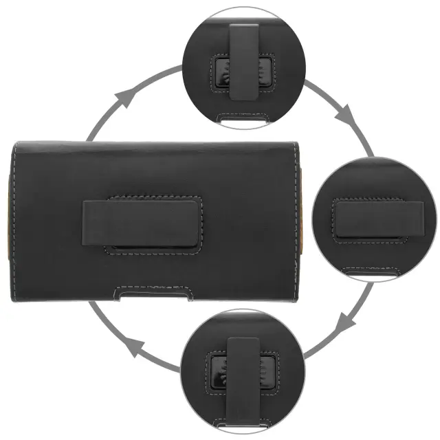 Horizontalna prešita prevleka za pas. 362° vrtljiva sponka za zavezovanje za enostavno namestitev na pas ali hlače. Popolna zaščita pred udarci in praskami. Dimenzije: 14,8 x 8,5 x 1,4 cm.