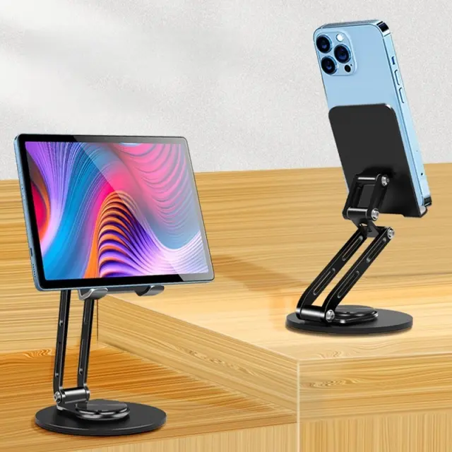 Popolna svoboda vrtenja: Izkusite neprimerljivo prilagodljivost gledanja z našim 360° vrtljivim stojalom za telefon. Brez težav preklapljajte med pokončnim in ležečim načinom, kar vam omogoča, da najdete popoln kot za video klice, gledanje filmov ali sledenje receptom. Ta vrtljiva funkcija izboljša vašo interakcijo z napravo, zaradi česar je idealna za pretakanje v živo, spletna srečanja in ustvarjanje vsebine. Robusten mehanizem vrtenja zagotavlja stabilnost, preprečuje neželeno nihanje ali zdrs, tudi pri večjih pametnih telefonih. Združljivo s široko paleto naprav, vključno z iPhoni, telefoni Samsung Galaxy in drugimi pametnimi telefoni, je to stojalo vsestranski dodatek k vsaki delovni površini ali domači zabaviščni opremi.