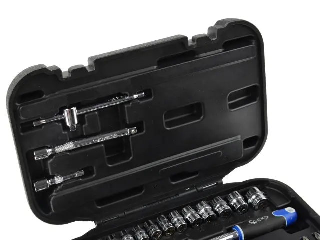 38-delni set 1/4″ racna Gedore je odlična izbira za tiste, ki potrebujejo kakovostno in zanesljivo orodje za svoje delo. Set vključuje 38 različnih orodij, vključno z natičnimi ključi, racno, podaljški in drugimi pripomočki. Orodje je izdelano iz kakovostnih materialov, ki zagotavljajo trpežnost in dolgo življenjsko dobo. Poleg tega je orodje enostavno za uporabo in omogoča natančno in učinkovito delo.