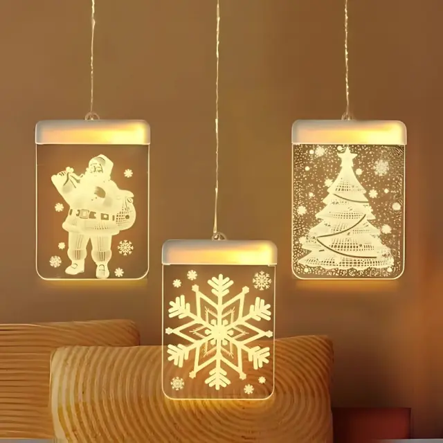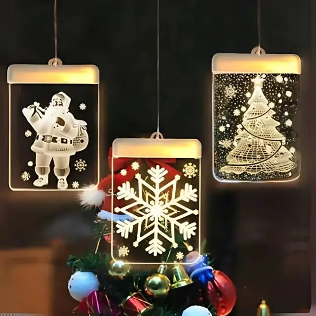 3D LED vitražno okno za božično drevo, božična lučka na baterije