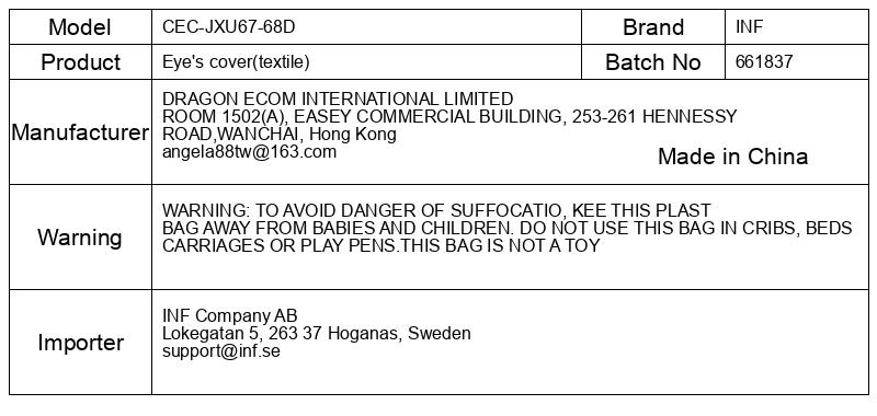 OPOZORILO: DA BI SE IZOGNILI NEVARNOSTI ZADUŠITVE, HRANITE TO PLASTIČNO VREČKO PROČ DO DOJENČKOV IN OTROK. NE UPORABLJAJTE TE VREČE V JISLICI, VOZIČKIH POSTELJICAH ALI IGRALIH. TA VREČKA NI IGRAČA