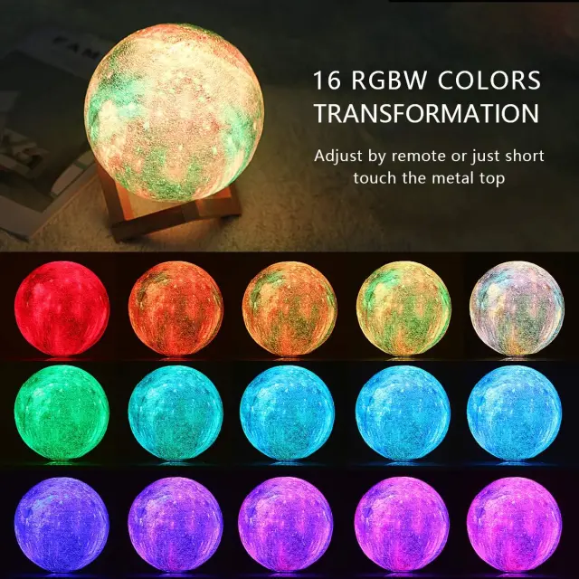 3D Moon Light LED nočna lučka na dotik 15 cm Moon Light 16 barv Možnost zatemnitve z daljinskim upravljalnikom USB za ponovno polnjenje za spalnico Ok