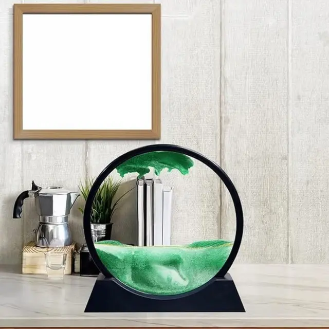 Z obračanjem okvirja se pri vsakem premiku ustvari popolnoma nova umetniška kompozicija, ki vas bo sprostila in navdihnila. Zaradi kakovostnega stekla, nežno tekočega peska in estetske zasnove je ta peščena slika popolna za domačo ali pisarniško dekoracijo.