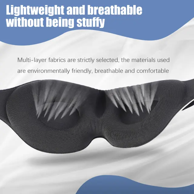 Maska za spanje je izdelana iz ultra mehkega materiala in zelo udobna za nošenje. Maska za oči učinkovito blokira svetlobo in je zasnovana tako, da ne pritiska na oči. Še vedno lahko mežikate kot običajno. S spalno masko se lažje sprostite in zaspite tudi v okolju z motečo svetlobo ali hrupom. Vključno z ušesnimi čepki in torbo za shranjevanje.