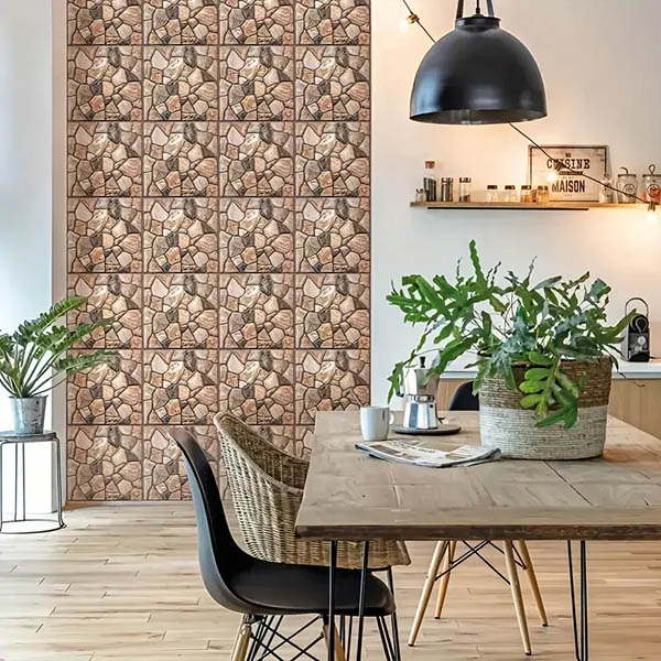 Ta stil naravnega kamna dopolnjuje različne notranje dekorje, od sodobnega minimalizma do rustikalnih kmečkih hiš ali majhnih počitniških hišic. Ne glede na to, ali preurejate celoten prostor ali dodajate edinstven pridih enemu kotičku, se te tapete odlično prilegajo.