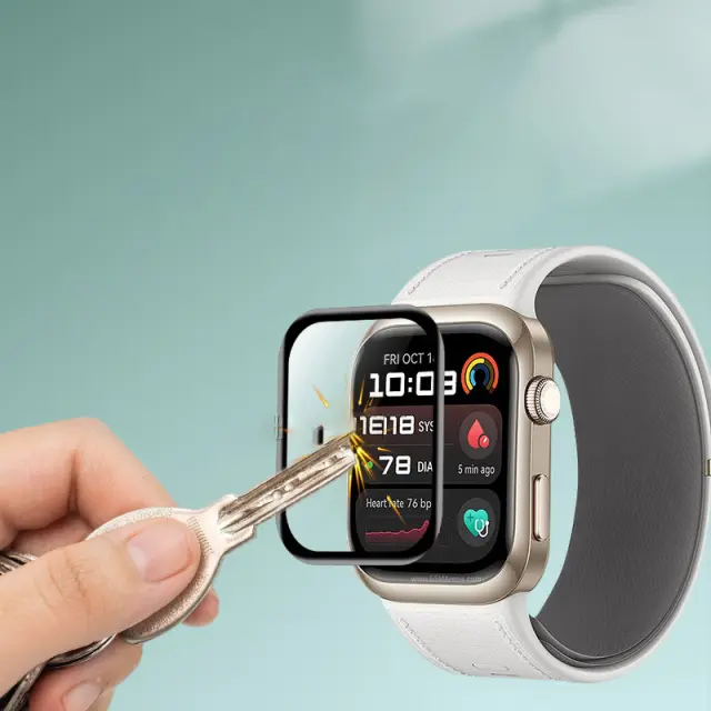 Mehak in udoben občutek: Ta zaščitna folija za zaslon je izdelana iz visokokakovostnega, mehkega filmskega materiala, ki je na zapestju gladek in udoben. Popolnoma se prilega obliki vašega urnega stekla in zagotavlja zaščito od roba do roba.