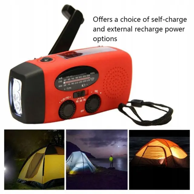Radio je lahek, prenosljiv in trpežen, kar ga naredi popolnega za pohodništvo, kampiranje ali izredne razmere. Uživajte v glasbi, ostanite informirani o vremenu in novicah, uporabite LED svetilko za osvetlitev poti in napolnite svoje naprave, ko ste na poti.