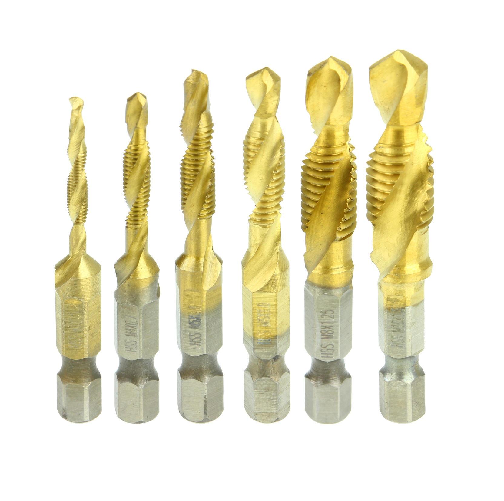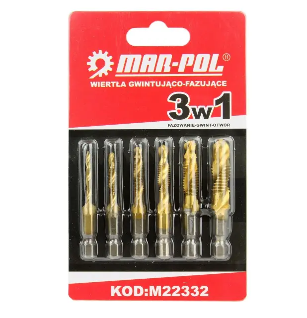 SET 6 ELEMENTOV – ponudbo sestavlja 6 svedrov v različnih velikostih (od M3 do M10), zahvaljujoč katerim lahko sveder prilagodite svojim potrebam