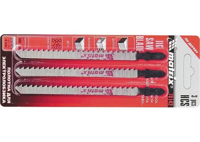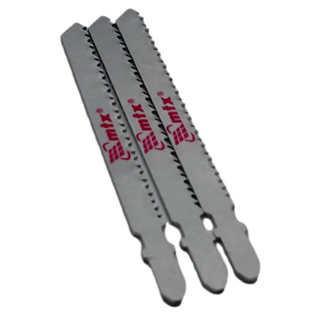 Listi za žago so primerni za uporabo z različnimi vrstami vbodnih žag.Žaga je nadomestni element za vbodne žage. Uporablja se za direktni rez na les, vezan les, iverne plošče, vlaknene plošče. Izdelano iz visokoogljičnega jekla HCS. Dolžina delovnega dela je 75 mm. Razmak med zobmi – 2,5 mm. Ima standardno EU steblo.Listi za vbodno žago iz visokoogljičnega jekla.Imajo standardni T-oprijem.Brušeno telo z ostro nabrušenimi zobmi omogoča čiste in ravne reze.Uporablja se za rezanje lesa.Dolžina, mm: 100Širina, mm: 8Priložena količina: 3Obdelovan material: lesDelovna dolžina, m: 75Dolžina, mm: 170Širina, mm: 60Višina, mm: 5