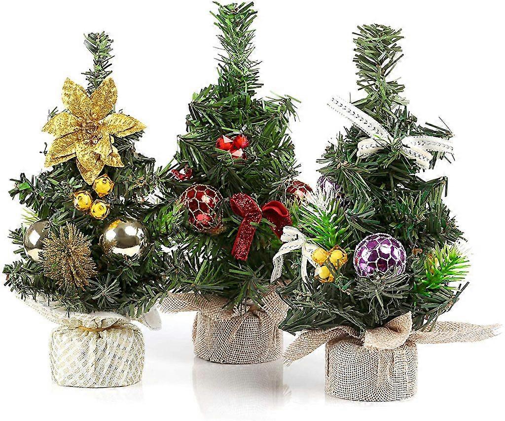 3X umetno majhno božično drevo okrašeno božično drevo Mini božični okras (22 x 11 cm)
