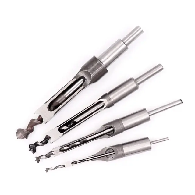 Vsestranski komplet: Komplet vključuje 4 svedre za kvadratne luknje različnih velikosti (0,65 cm, 0,8 cm, 0,95 cm, 1,27 cm), ki omogočajo uporabo pri različnih opravilih pri obdelavi lesa.