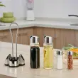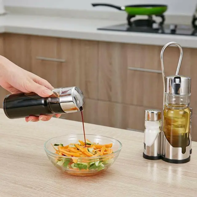 Eleganten set z držalom za olje, kis, sol in poper je izjemno praktičen dodatek za vašo kuhinjo oz. mizo, ki združuje funkcionalnost z estetskim dizajnom. Postavitev posod v držalu omogoča optimalen izkoristek prostora in enostavno premikanje oz. prenašanje namiznega seta. Steklene prozorne posodice omogočajo stalen vpogled v vsebino.