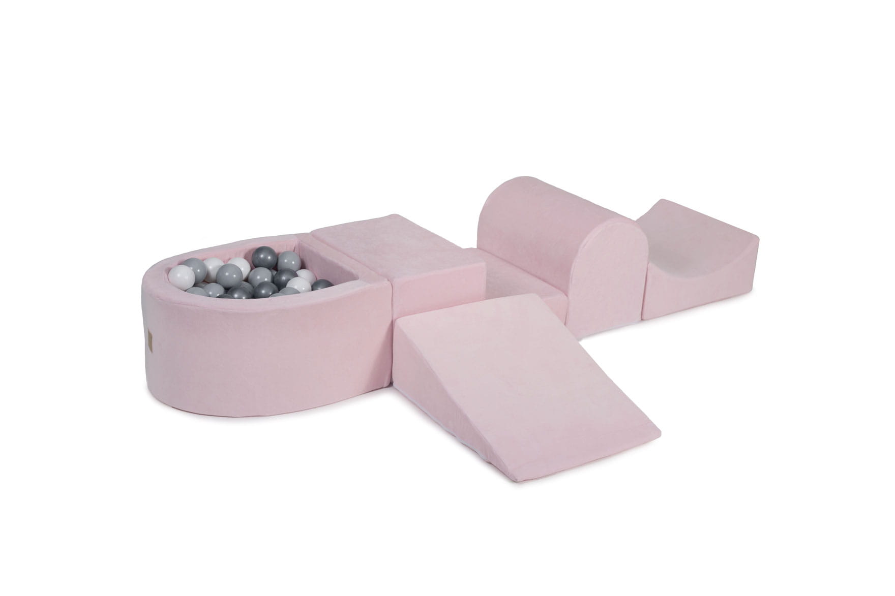 4-delni penasti igralni komplet MeowBaby® Foam Playground z majhnim bazenom za žoge, 100 žog, žamet, svetlo roza: siva/bela/srebrna