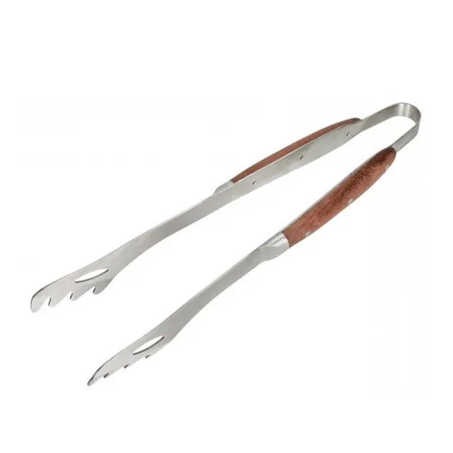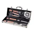 Brandanijev set za žar s 4 pripomočki: vilica, pravokotna perforirana lopatka, nož in klešče oz. prijemalka. Vse iz nerjavečega jekla z lesenimi ročaji, shranjeno v kovčku dimenzije 45 x 16 x 9 cm, ki bo naredil vaš dan peke na žaru še bolj praktičen in prijeten. Pripomočki niso primerni za pomivanje v pomivalnem stroju.