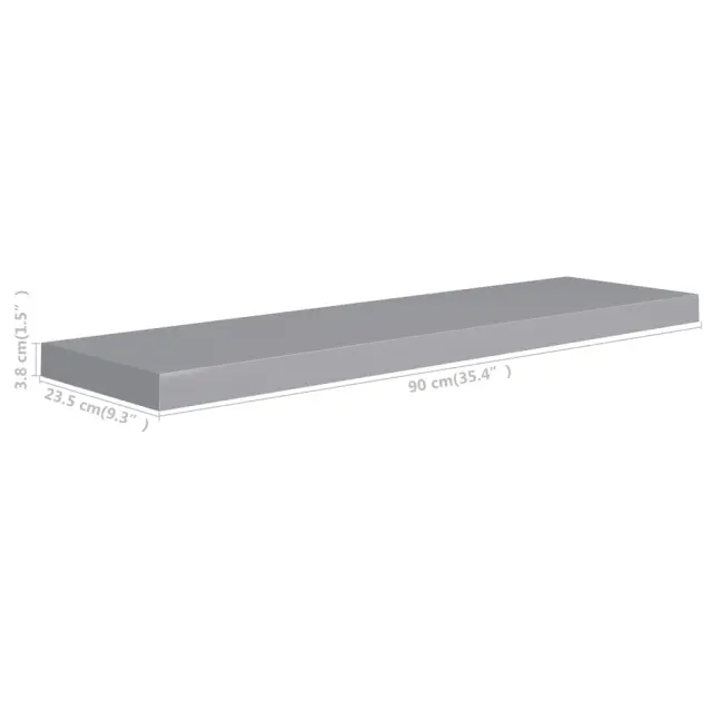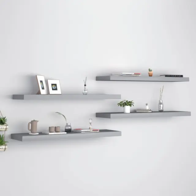 4 kosi Stenske Police - Viseče police sive 90x23,5x3,8 cm MDF