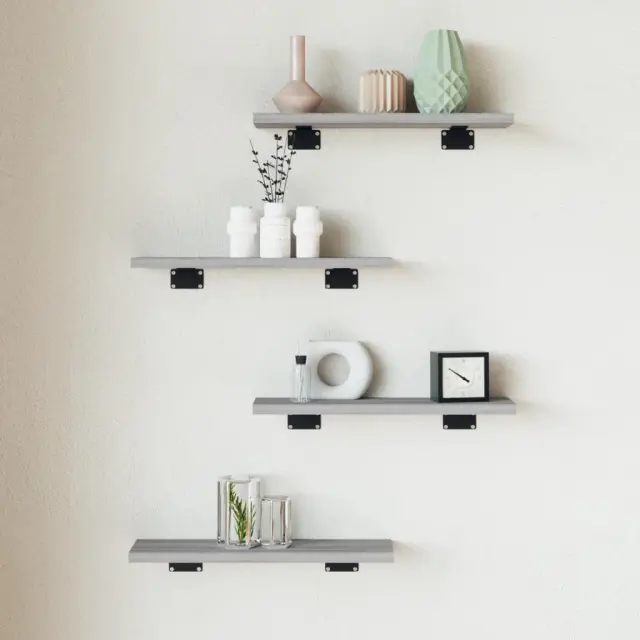 4 kosi Stenske Police - Viseče police siva sonoma 40x10x1,5 cm inženirski les