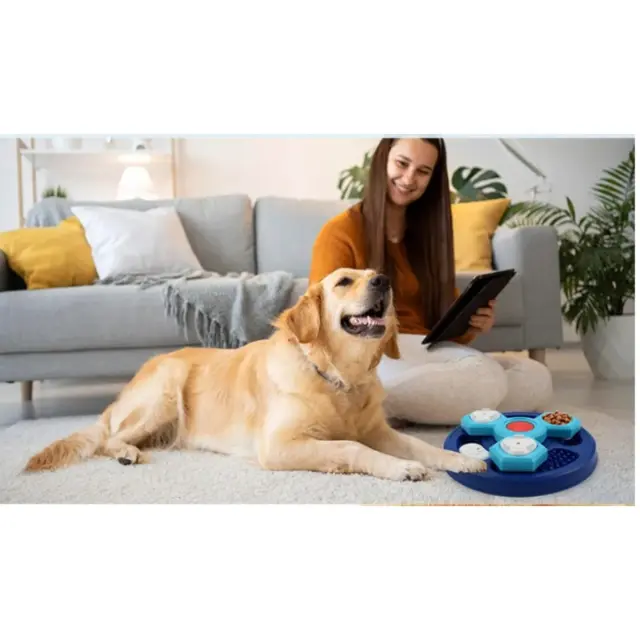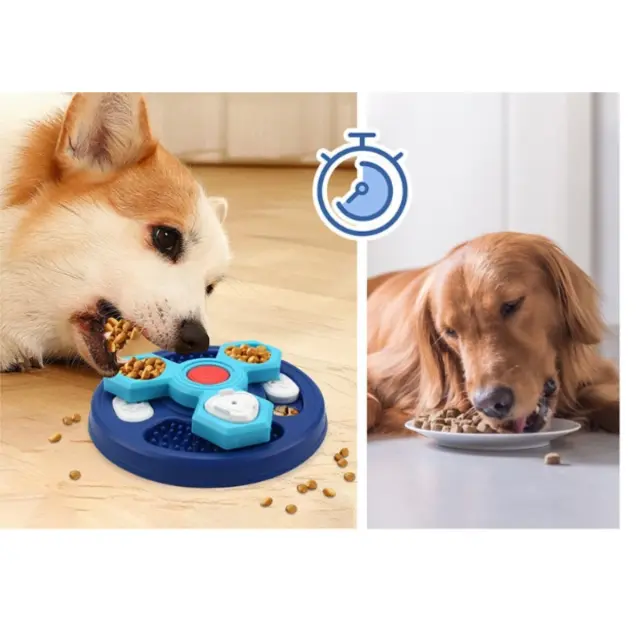 Interaktivna igra in trening: Modro dno z namensko konfiguriranimi predelki omogoča skrivanje briketov in priboljškov, kar spodbuja iskanje in reševanje ugank med obrokom. Kot interaktivna pasja igrača ta podajalnik povečuje angažiranost, podaljšuje čas hranjenja in služi kot pripomoček pri treningu inteligence in vedenja. Predstavljajte si sceno, kjer pes z radovednostjo raziskuje vsak nivo; hranjenje postane nagrajujoča miselna aktivnost, ki krepi osredotočenost in zadovoljstvo.