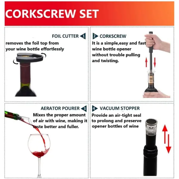 4-v-1 komplet odpirača za vino z zračno črpalko | AIRCORK