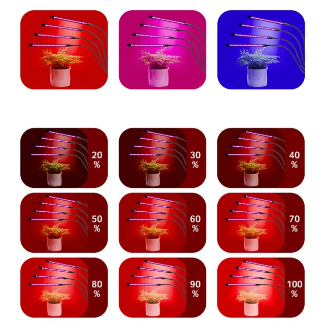 Enostavna nastavitev naklona in uporaba – ta LED svetilka za rast podpira rast, brstenje in cvetenje rastlin . Valovno dolžino, ki jo oddaja, lahko rastline v celoti absorbirajo za fotosintezo. Svetilko pritrdite na izbrano mesto in jo priključite na USB priključek. Pritisnite stikalo, da ga vklopite in zasvetila bo mešanica rdeče in modre svetlobe. Stikalo ima funkcije začasne osvetlitve, menjave svetlobe in moči svetlobe. Poleg tega lahko kovinske palice plošč nastavite pod želenim kotom, da povečate učinkovitost osvetlitve.