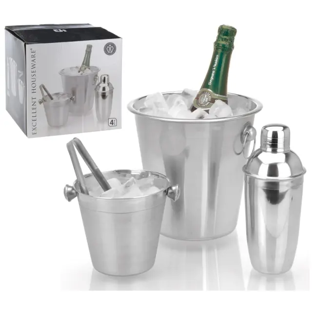 424155 Excellent Houseware 4 Piece Bar Set Stainless Steel