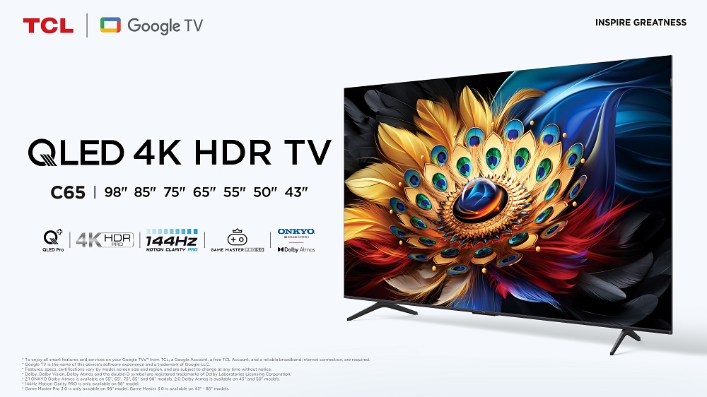 Eleganten in pameten: luksuzna zasnova brez okvirja serije TCL C65 vključuje nastavljiv podstavek z dvema položajema.*