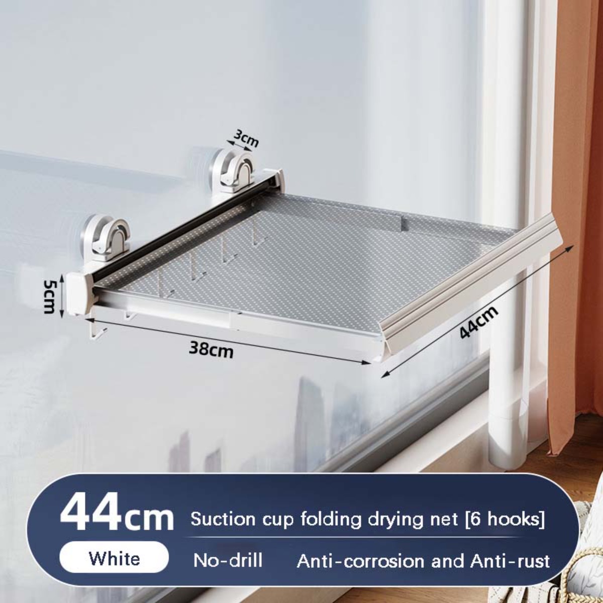 Prihranek prostora: Inovativna 44cm zložljiva sušilna mreža s sesalnim pokalom je idealna rešitev za maksimalno izrabo prostora v majhnih stanovanjih, na balkonih ali v pralnicah. Zložljiva zasnova omogoča enostavno shranjevanje, ko ni v uporabi, zaradi česar je odlična izbira za tiste, ki potrebujejo začasno ali prenosljivo rešitev za sušenje. Močni sesalni pokali zagotavljajo varno pritrditev na gladke površine, odpravljajo potrebo po vrtanju in preprečujejo poškodbe sten.