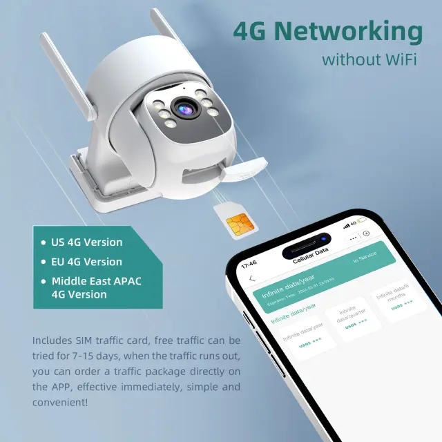 Neprekinjeno 24/7 snemanje: AOV solarna kamera je zasnovana za neprekinjeno 24-urno snemanje videa, kar zagotavlja, da ne boste nikoli zamudili trenutka. Opremljena je z visoko zmogljivo 8000mAh certificirano baterijo in 7W solarnim panelom, ki izkorišča sončno energijo za samozadostno napajanje, kar zagotavlja neprekinjeno varnost brez pogostih menjav baterij. Idealna je za oddaljene lokacije, gradbišča ali katero koli območje, kjer je stalno spremljanje ključnega pomena, ta kamera pa zagotavlja brezskrbnost s svojimi zanesljivimi in neprekinjenimi zmožnostmi snemanja. 4G povezljivost zagotavlja dostop do posnetkov v realnem času od kjerkoli.